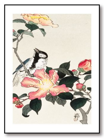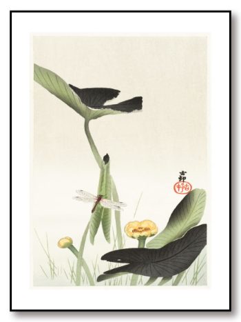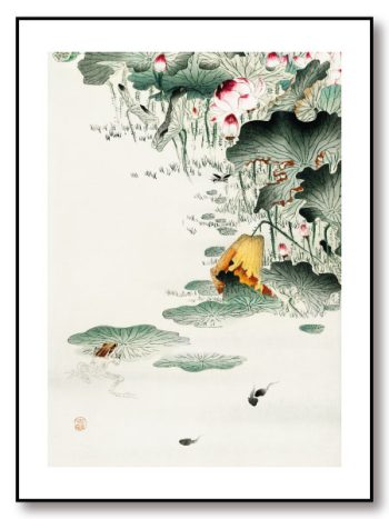 Japon sanatçısı Ohara Koson’un bu zamansız eseri, nilüfer çiçeği üzerinde duran yalıçapkınını sade renklerle betimler. Doğanın dinginliğini yansıtan bu baskı, Japon minimalizminin zarafetini taşır.