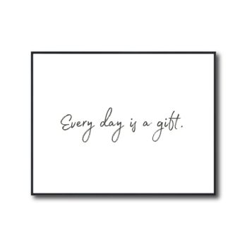Seçenekler Bu ürünün birden fazla varyasyonu var. Seçenekler ürün sayfasından seçilebilir Hızlı Gözat150,00 ₺ – 1.600,00 ₺Fiyat aralığı: 150,00 ₺ - 1.600,00 ₺Sade tipografiyle hazırlanmış bu poster, “Every day is a gift” mesajıyla pozitif bir yaşam enerjisi sunar. Modern ve ferah dekorlarda ilham verici bir dokunuş oluşturur.