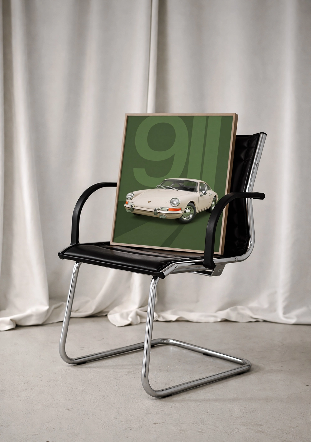 Bazı tasarımlar asla eskimez. Orman yeşili tonlarının retro ruhunu,  911’in ikonik silüetiyle birleştiren bu poster; otomobil tutkusunu minimalist bir sanat eserine dönüştürüyor. Çalışma odanızda veya salonunuzda zamansız bir mühendislik estetiği sergilemek için ideal.
