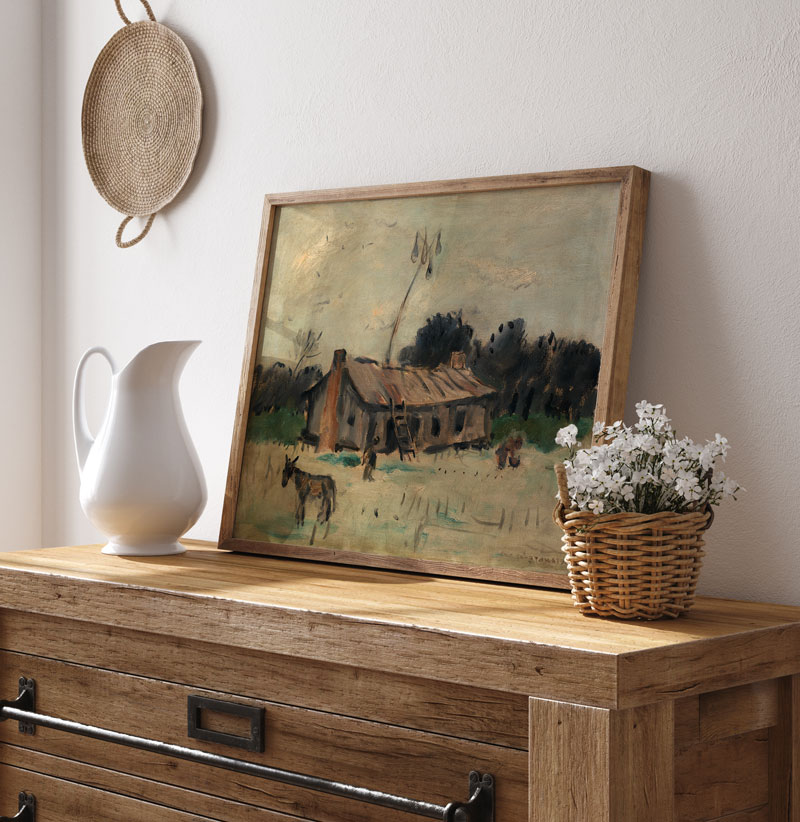 Cabin in Alabama, Amerika kırsalından sakin ve yalnız bir anı yansıtan etkileyici bir manzara eseridir. Doğal fırça darbeleri ve yalın kompozisyonu huzurlu bir atmosfer oluşturur. Toprak tonları ve yumuşak ışık kullanımı zamansız bir his verir. Rustik ve doğayla uyumlu mekanlar için sade bir sanat dokunuşu sunar.