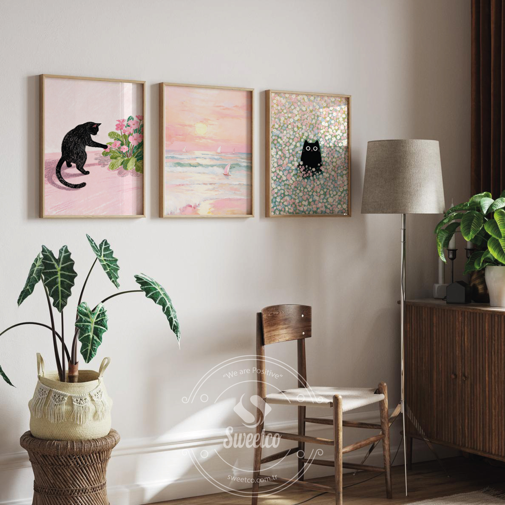 Dreamy Catscape Set – Pastel Kedi ve Manzara Duvar Dekoru