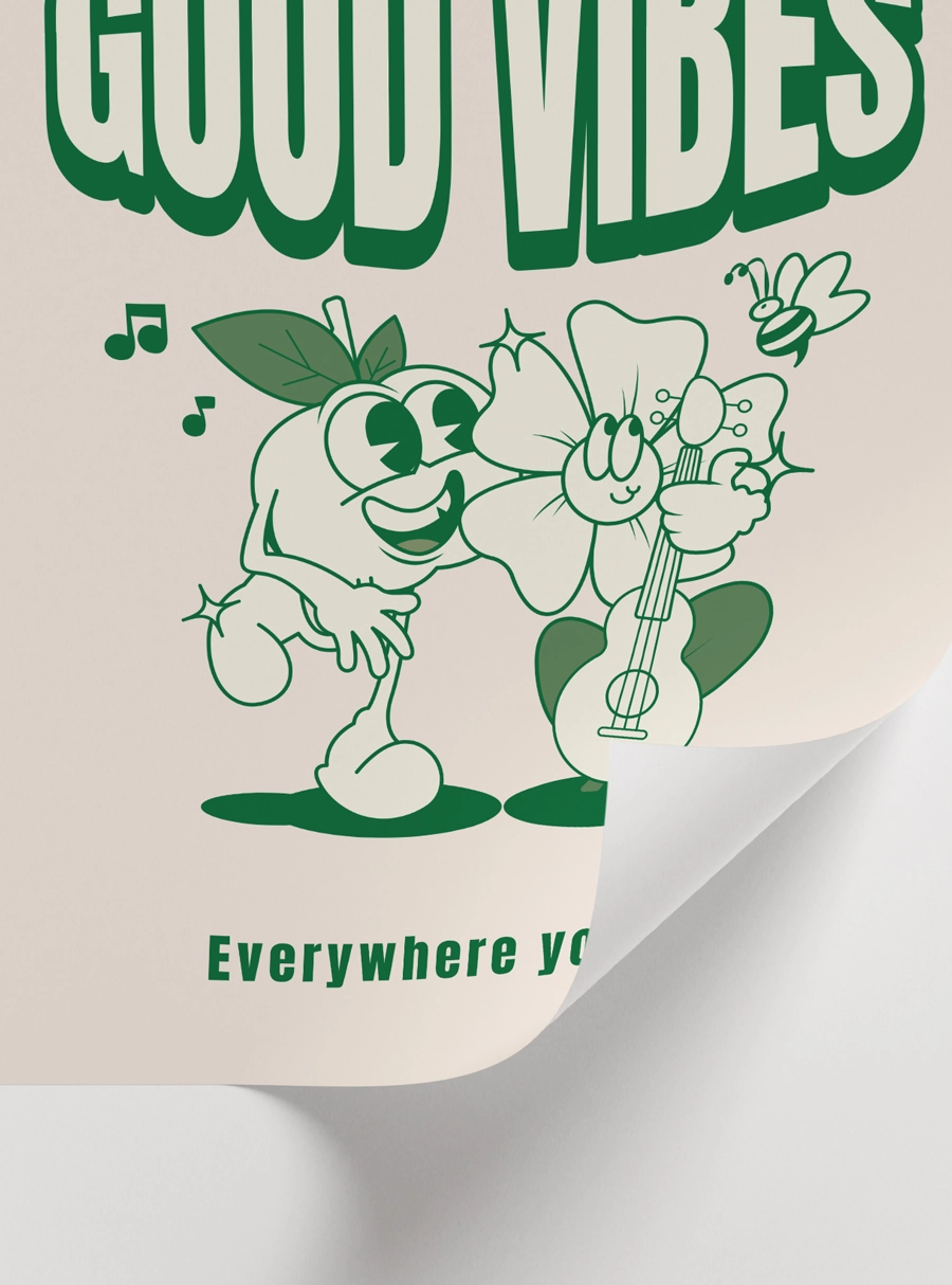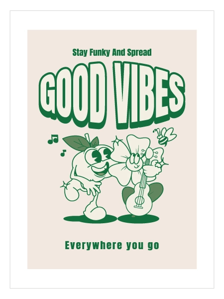 Good Vibes Poster – Retro Eğlenceli Karakter İllüstrasyon Duvar Posteri