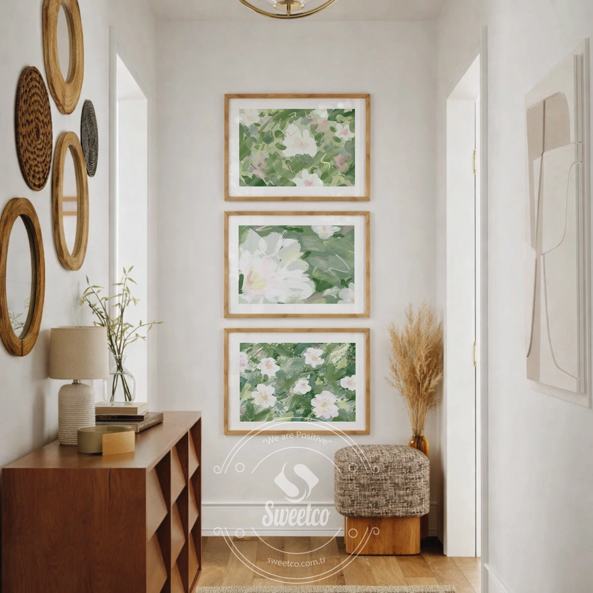 Doğadan ilham alan yeşil tonları ve çiçek desenleriyle tasarlanmış 3’lü poster set. Ferah ve huzurlu yaşam alanları oluşturmak için ideal.