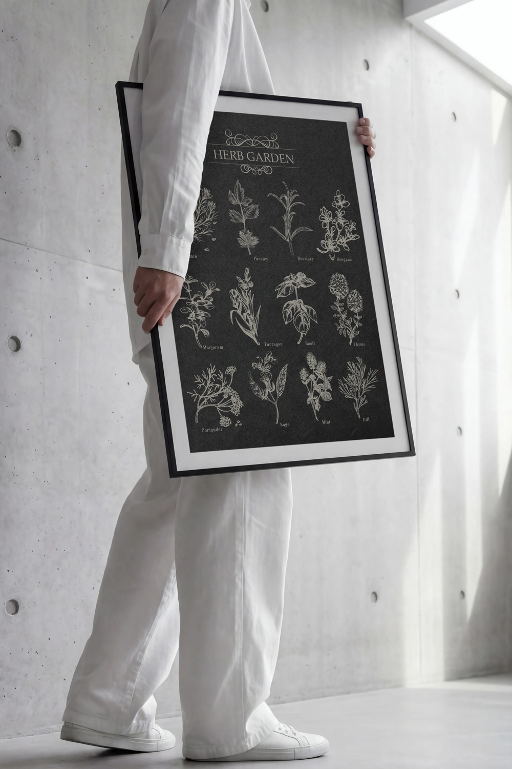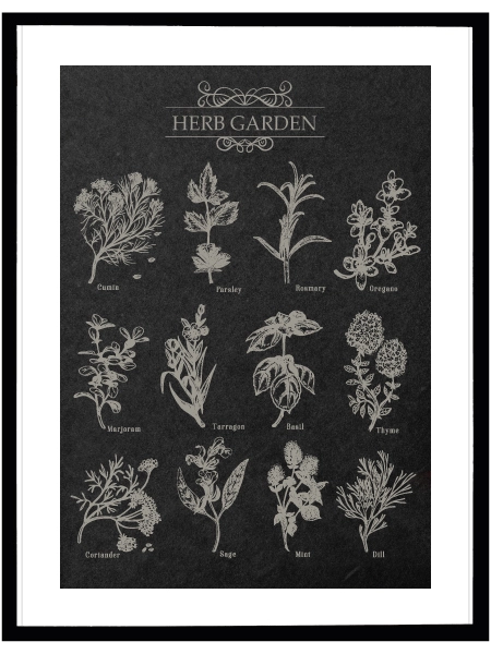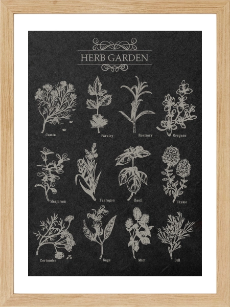 Vintage çizim estetiğiyle hazırlanan Herb Garden Poster, mutfak dekorasyonuna doğal ve zarif bir hava katar. Fesleğen, nane, maydanoz, kekik gibi bitkilerin botanik illüstrasyonlarıyla tasarlanmıştır. Çerçeveli ve çerçevesiz seçeneklerle sunulur.
