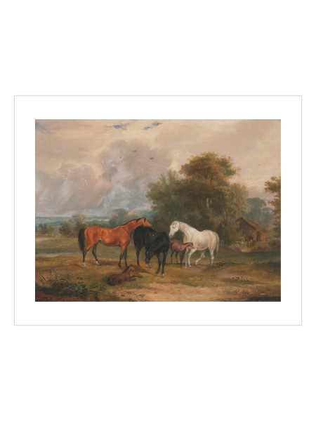 Horses Grazing Poster – Kırsalda Atlar ve Tayların Sakin Anı