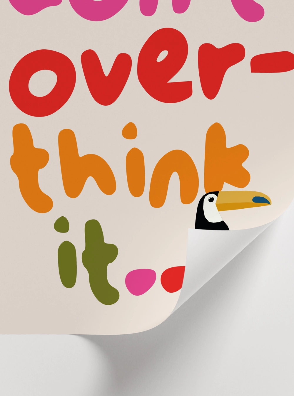 Don’t Overthink It Poster – Renkli Tipografi ve Tropik Kuş Tasarımı Fiyat aralığı: 150,00 ₺ - 1.750,00 ₺