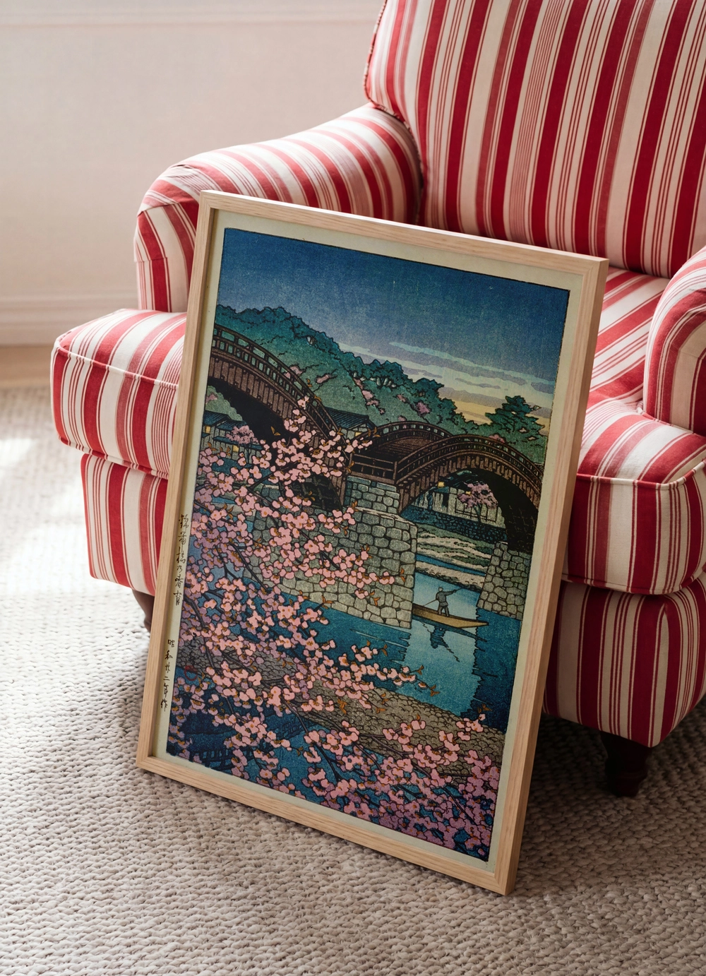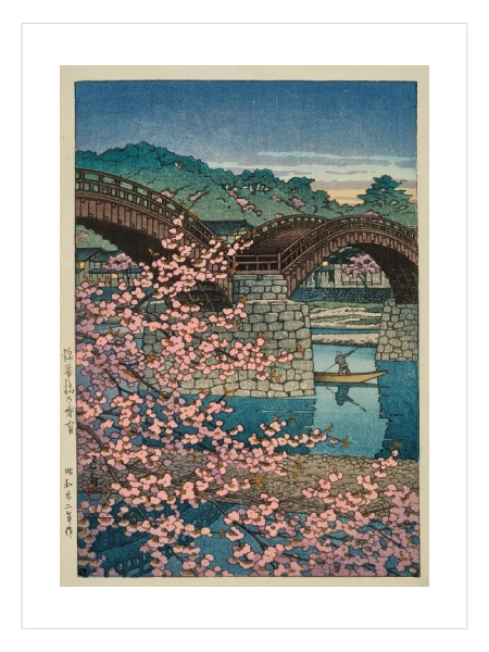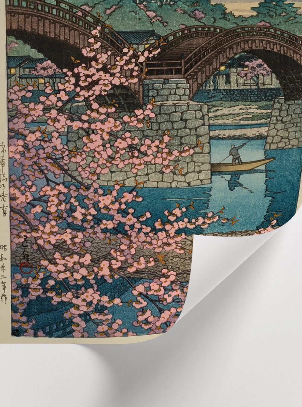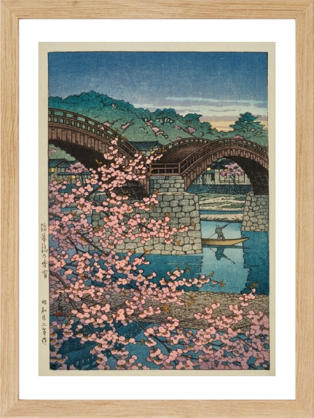 Kintai Köprüsü ve sakura ağaçlarının yer aldığı bu klasik Japon manzarası, geleneksel sanat estetiğini modern duvar dekoruyla buluşturur.