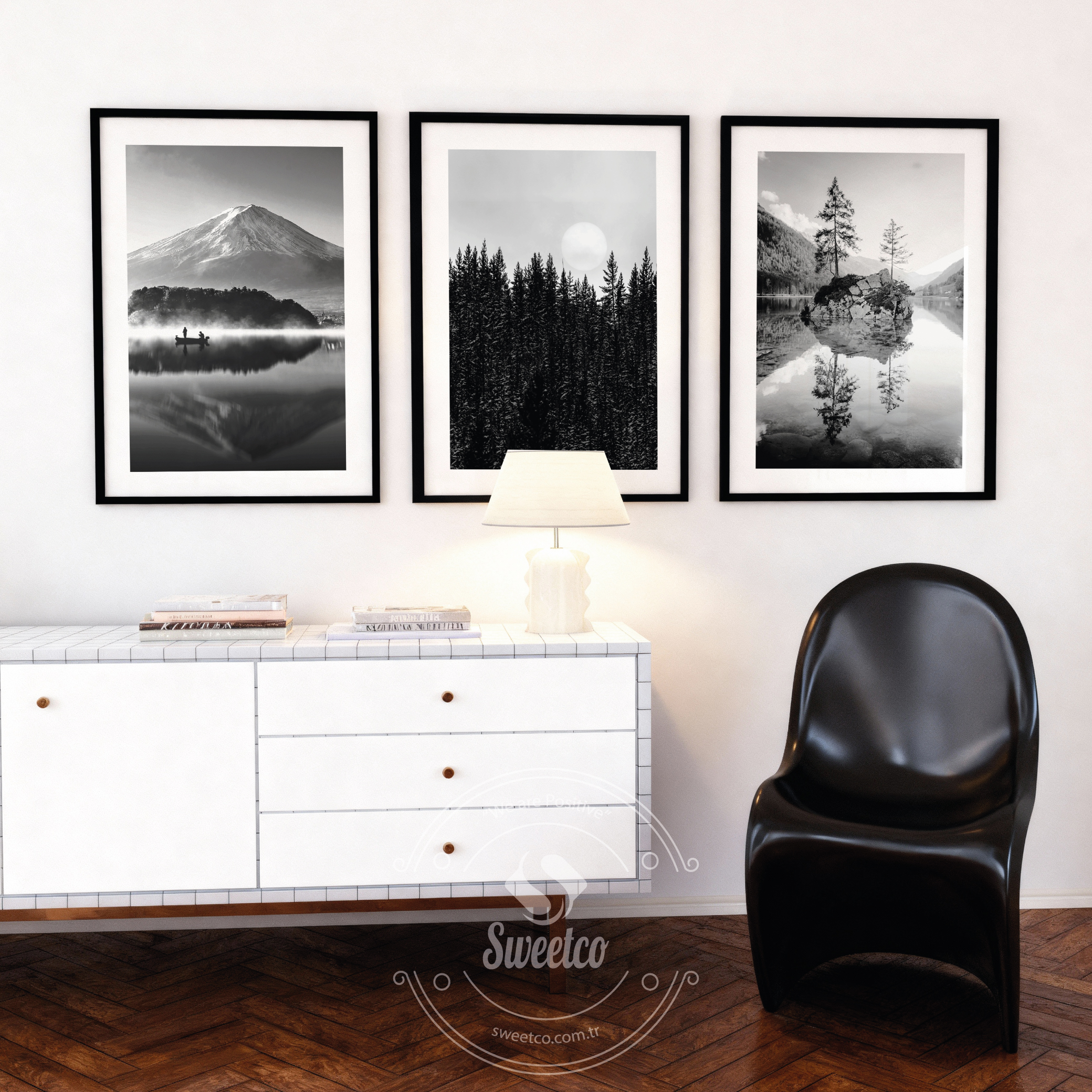 Nordic Nature Set, siyah beyaz tonlarda huzurlu bir doğa atmosferi sunar. Dağ, orman ve göl yansımaları mekana sakinlik ve denge katar. Minimal ve Nordik dekor tarzlarıyla mükemmel uyum sağlar. Salon, yatak odası veya çalışma alanlarında zarif bir odak noktası oluşturur. Zamansız monokrom yapısı modern bir şıklık sağlar.