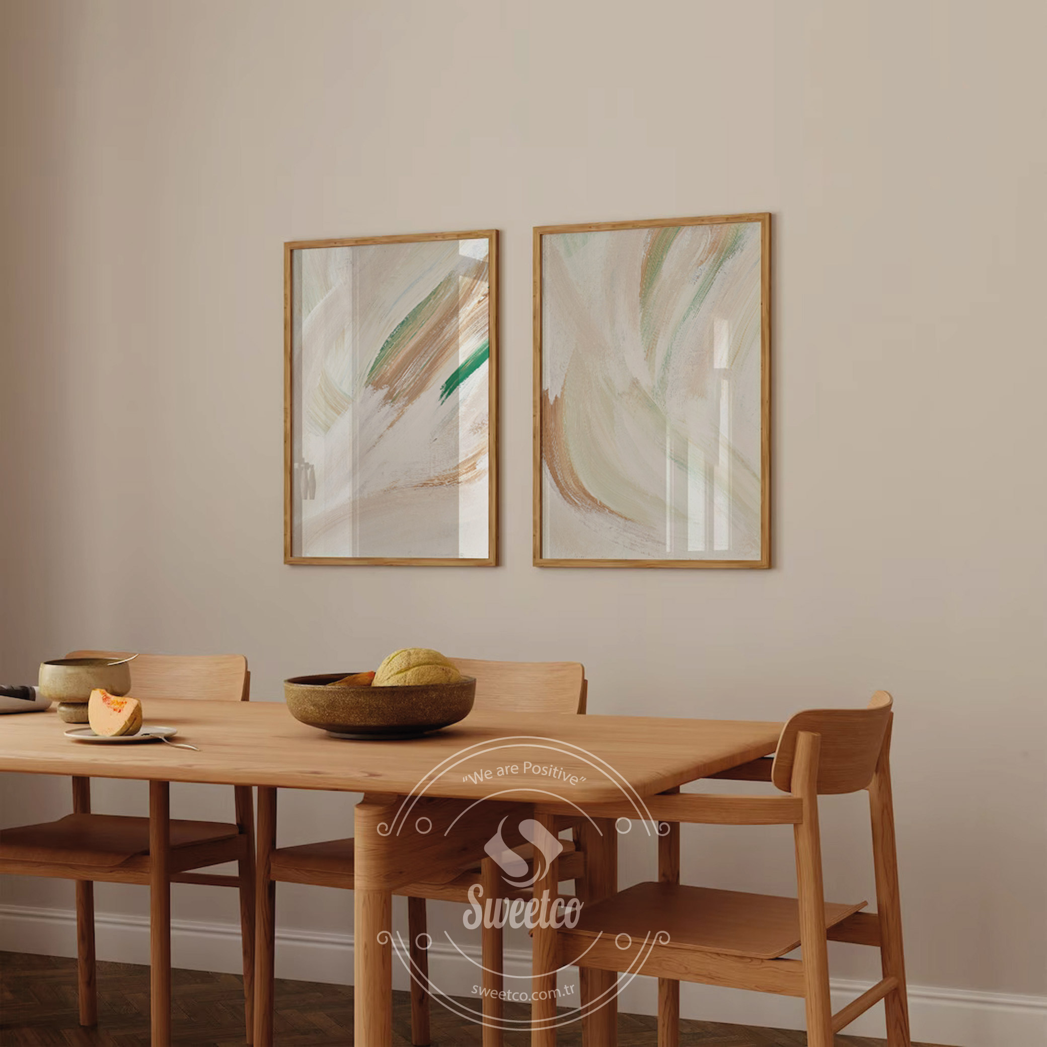 Soft Current Set, doğal tonlar ve akışkan fırça hareketleriyle mekânda sakin bir denge kurar. Bej, toprak ve yeşilin yumuşak geçişleri ortama ferahlık ve dinginlik katar. Minimal ve modern dekorasyonlarla uyum sağlar. Yemek alanı, salon ve çalışma köşelerinde zarif bir atmosfer yaratır. Duvarlarınıza sessiz ama güçlü bir sanat dokunuşu ekler.
