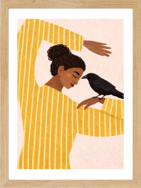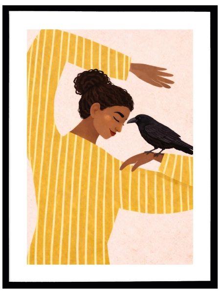 Woman with Black Crow Poster – Modern Figüratif Sanat